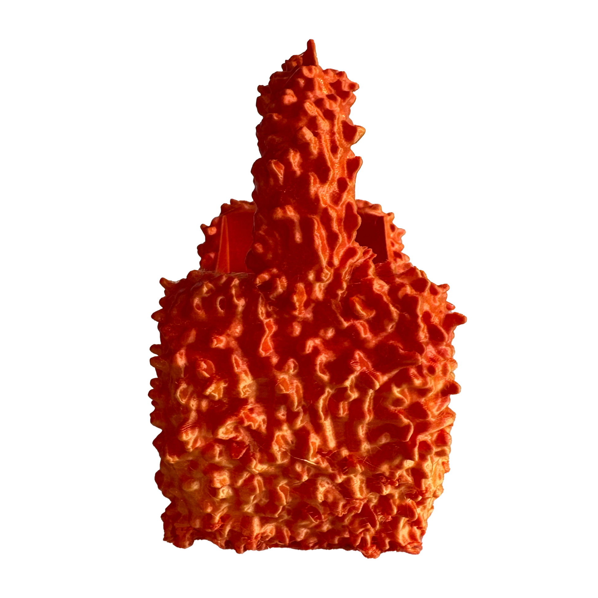 Crafted with a mesmerizing multi-color orange-yellow gradient, its surface features an intricate textured pattern reminiscent of coral, yet soft and whimsical — the inspiration for its name, “Fluff.” Every detail is the result of layer-by-layer precision, with carefully removed supports to reveal its sculptural form.